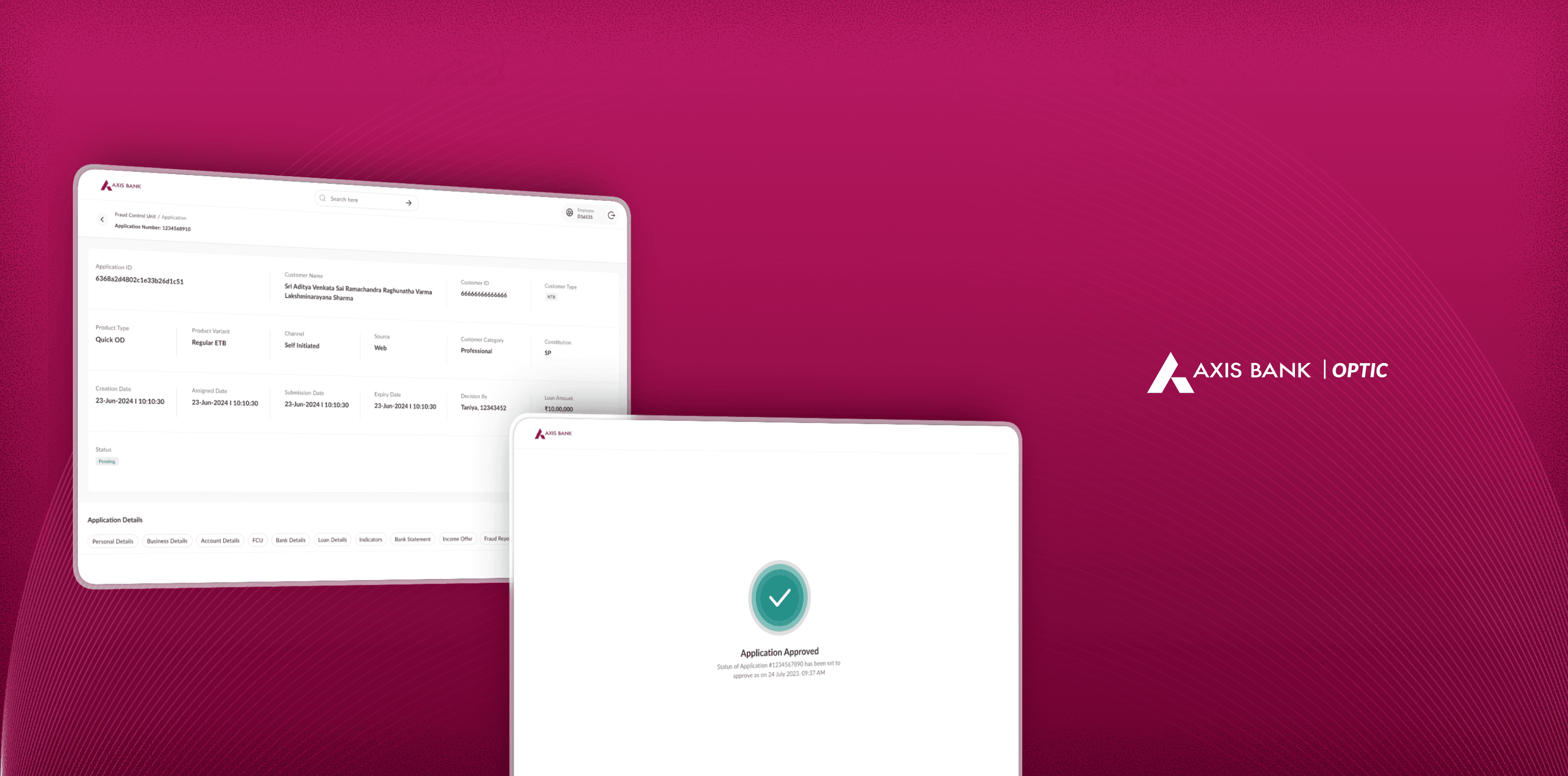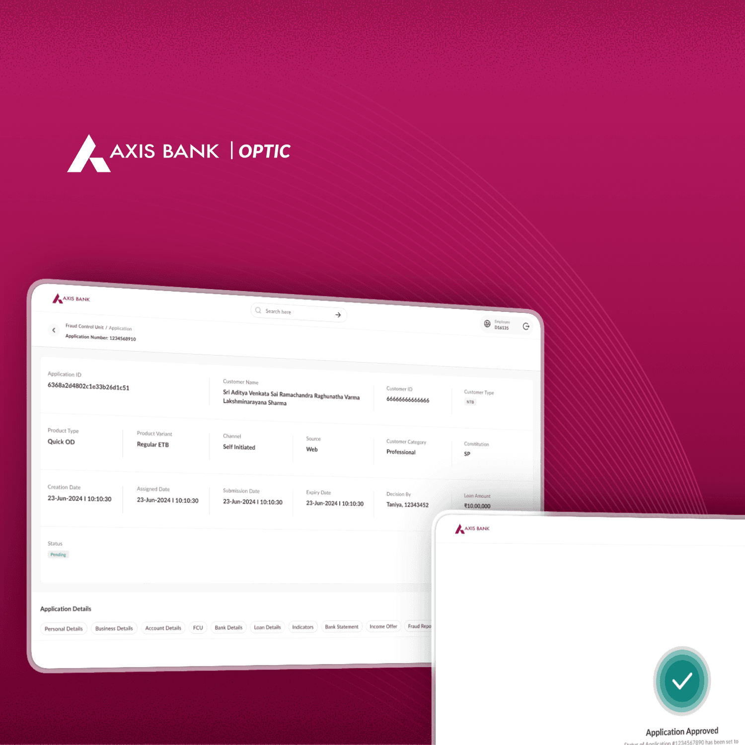Optic is an internal fraud management platform designed to streamline credit application reviews for Axis Bank’s commercial lending products, improving approval transparency and reducing operational backlogs.