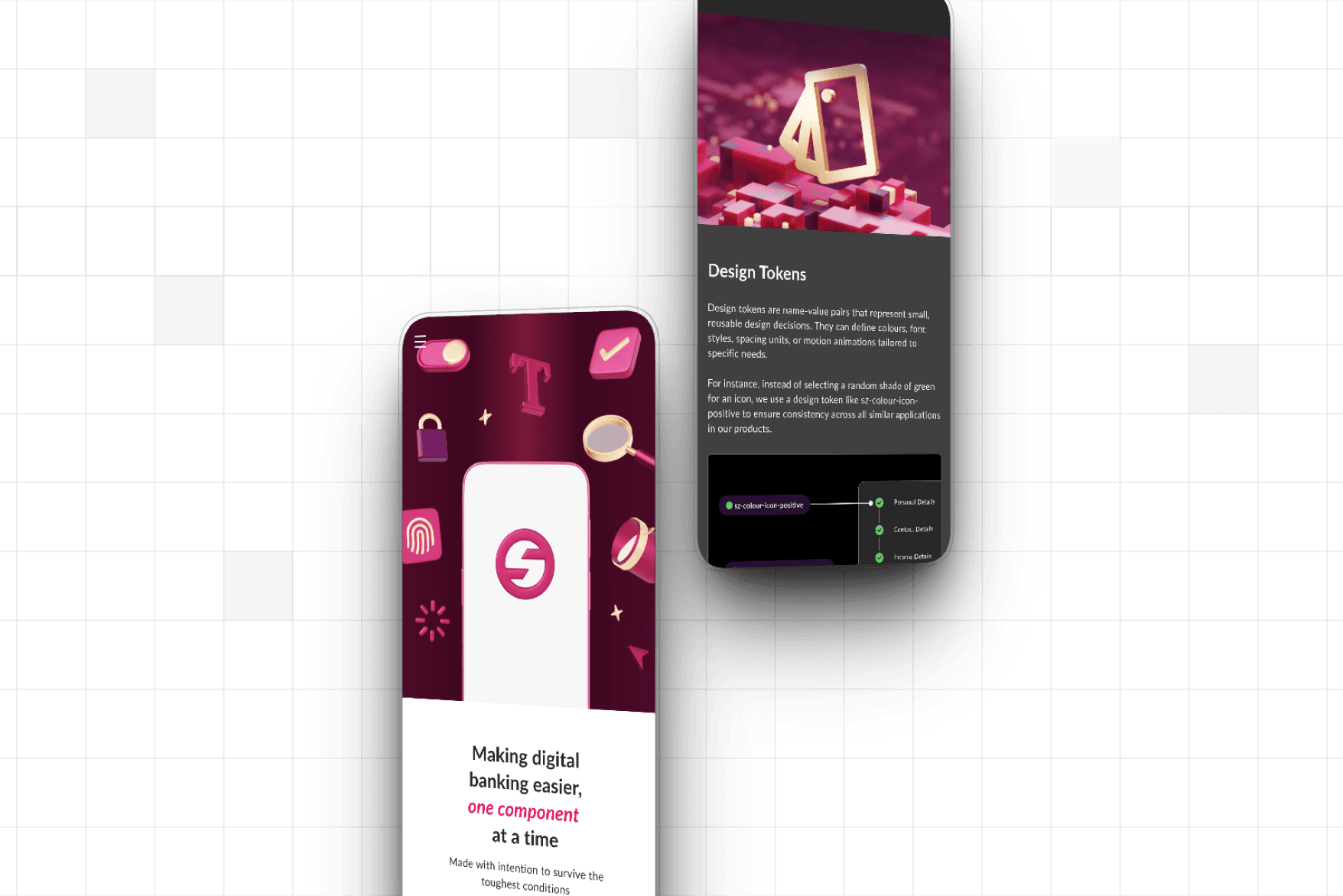 Structured tokens and reusable design patterns for common flows such as login and OTP significantly reduced front-end build effort.